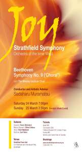 Next year promises to take us to new heights with our new Principal Conductor and Artistic Advisor, Sadaharu Muramatsu, who has devised a mouth-watering program for us. Under the theme “Emotion”, we will start with Beethoven’s Choral Symphony with choir and soloists. In June our Family Concert will feature Prokofiev’s “Peter and the Wolf” and in September we continue our exploration of Sibelius with his best loved Second Symphony. We will end the year with Prokofiev’s masterpiece “Romeo and Juliet” which we hope to present in a new and extraordinary way.
